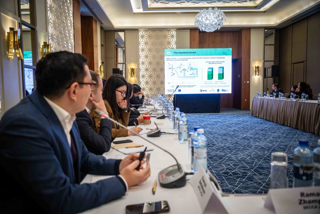 Astana, Kazakhstan – At a Roundtable on regulation of methane emissions, the European Union (EU)-funded SECCA project presented the findings of an analytical study assessing the potential impact of the EU methane regulation on the exports of the Republic of Kazakhstan. The event brought together representatives of the Ministry of Energy of Kazakhstan, the EU Delegation to Kazakhstan, oil and gas companies, research institutions, and other key stakeholders.