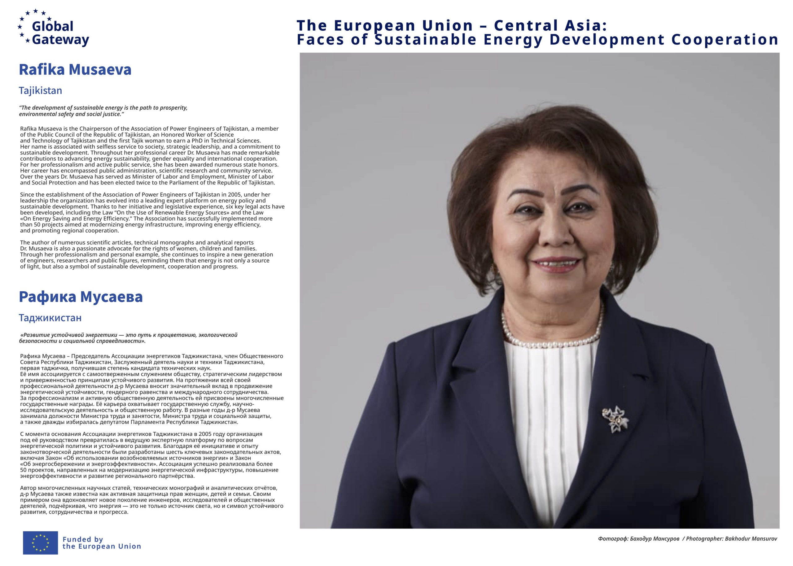 In addition, the Jury gave special recognition to other two journalists: Ayzada Amangeldiyeva, Uzbekistan, for an online interview on “Anchor.uz” titled “Karakalpak Princesses: would you marry a woman working in the energy sector?” and Ermek Aktanov, Kyrgyzstan, for a radio report on “Birinchi Radio” titled “A woman in energy”.